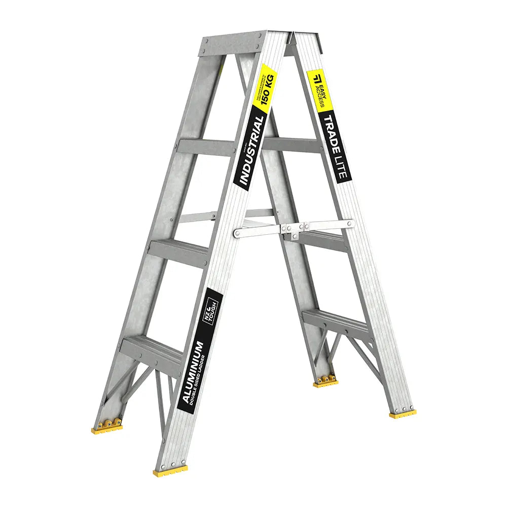 The TradeLite Double Sided Ladder has a lightweight yet robust design for safe, easy handling. It delivers outstanding value with safety-rich features at an affordable price. Built with XL Titan tough rivets, it boasts double-braced steps and foldable side stays for enhanced rigidity and longevity. Anti-slip steps and feet, a solid hinge, and a 150kg rating ensure safety and durability. Compact for storage and transport, it meets AS/NZS 1892.1:2018 standards and includes a 3-year warranty.