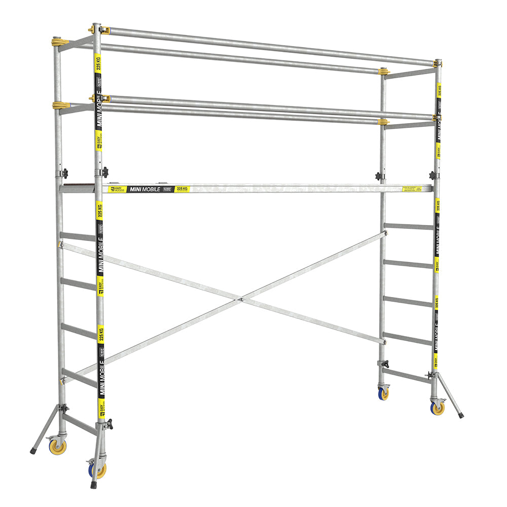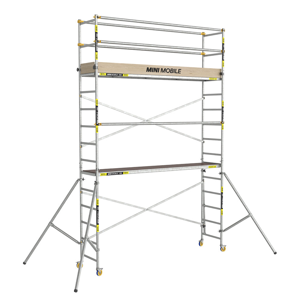The Mini Mobile 3m Long Series is a trusted choice for professionals across New Zealand, renowned for its practicality and enduring popularity on worksites nationwide. Proudly made in NZ, it is a fully welded, robust aluminium design—completely rivet-free for superior durability and long-term reliability.The Mini Mobile 3000mmL Series is perfect for accessing longer areas and minimises the amount of times the scaffold has to be moved. Designed for maximum versatility, Mini Mobile towers are ideal for indoor use and tight access areas with a narrow 700mm width effortlessly fitting through standard doorways for ultimate convenience. With rungs built into the frame, there’s no need for a separate ladder, making setup fast and user-friendly.The Mini Mobile MM213 model has a platform height of 0.9m and is capable of tackling access jobs up to 2.9m high. This model provides a stable and secure platform for both professional tradespeople and DIY users. To go higher, additional components can be brought separately and added. Or you can consider a different height Mini Mobile pack. Rated to 225kg and fully compliant, the Mini Mobile scaffold sets include outriggers and toeboards when required for compliance and safety ensuring confidence on every job.Additional add-on packs are avalible packs for various uses including a stair pack, an expansion pack to span between two Mini Mobile scaffolds, a corner pack for use around corners and more.The ultimate configurability of the Mini Mobile range makes it a go-to minor scaffold solution every time!