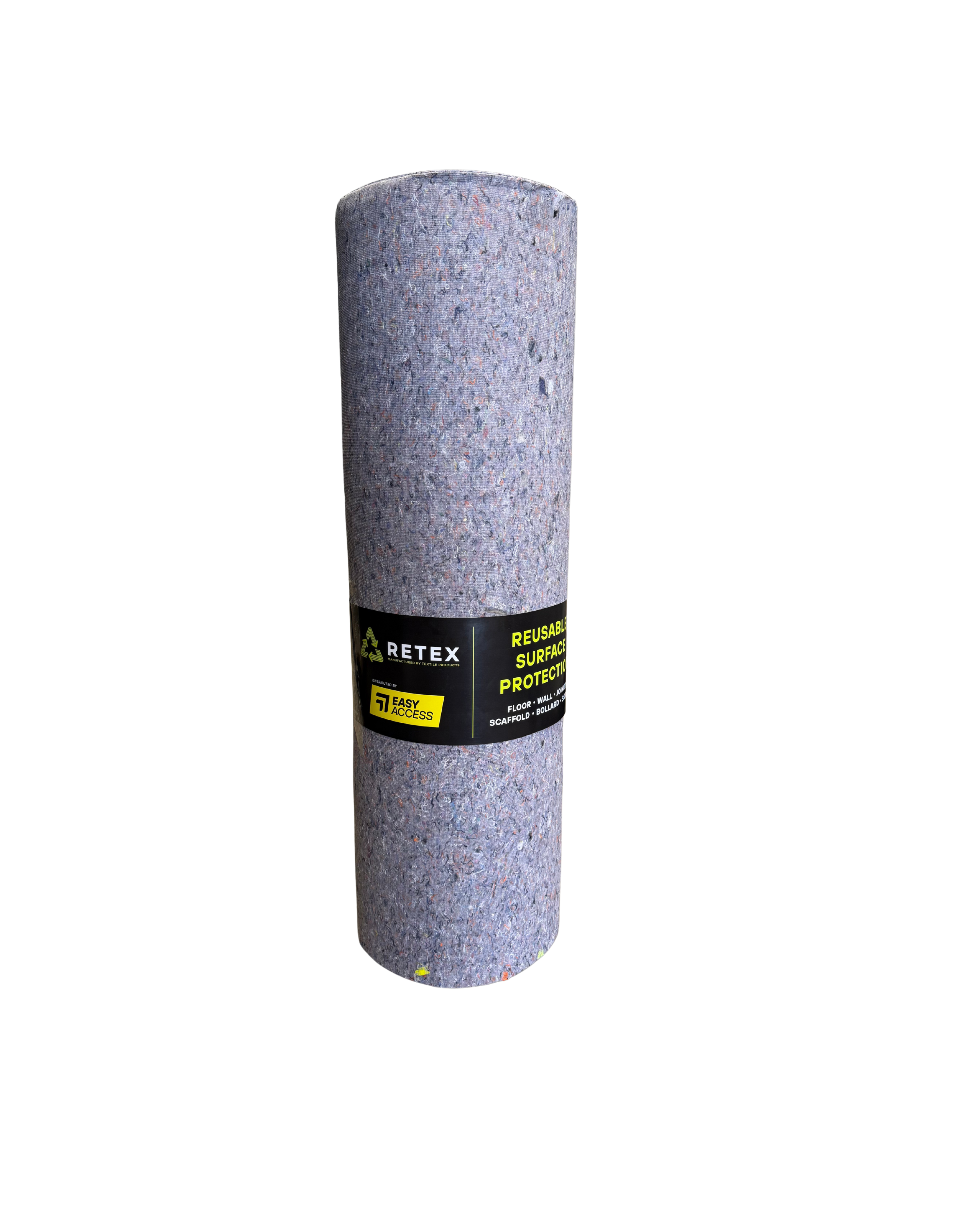 Retex is the future of building surface protection. Made in NZ from recycled textiles, it’s 100% sustainable and can be recycled indefinitely. Cost-effective and reusable multiple times, Retex suits many applications with superior flexibility, acoustic properties, and easy handling for floors, walls, joinery, scaffolds, and more.