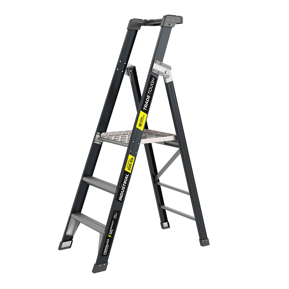 The TradeTough Fibreglass Platform Ladder is perfect for electricians with non-conductive fibreglass stiles. Rated to 150kg, welded back legs, XL Titan rivets, anti-slip steps, and a 0.9m handrail, it’s safe, strong, and site ready. Compliant with AS/NZS 1892.1:2018, 10-year warranty.