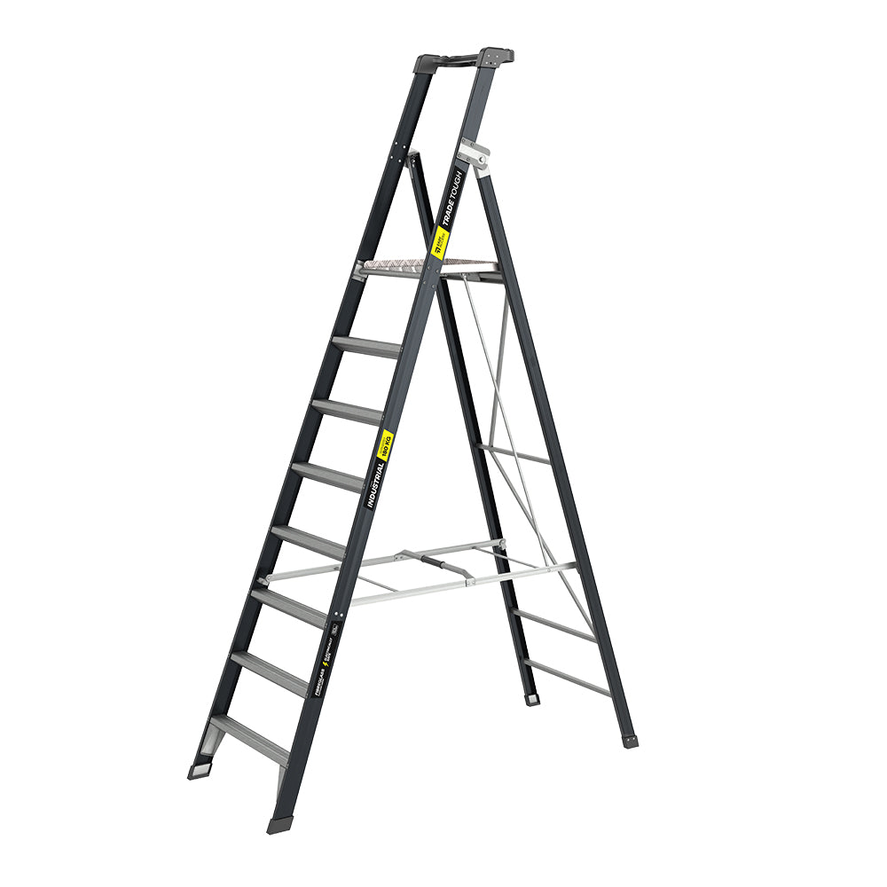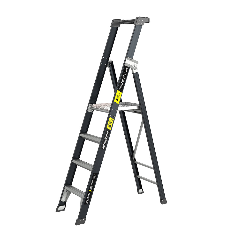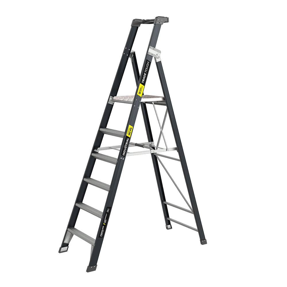 Born in 1999, TradeTough is the classic tough range of ladders commonly seen on construction sites across NZ. The TradeTough Fibreglass Platform Ladder is load rated to a 150kg, providing tradies with the rugged reliability they need on site. Non-conductive fibreglass stiles make them ideal for electricians. Made tough and ridged with fully welded back legs, trapezoidal steps, double-bracing, XL titan tough rivets, and anti-slip steps and feet. It features a uniquely tall 0.9m handrail for ultimate user safety. Sturdy, user-friendly and compact for storage, it complies with AS/NZS 1892.1:2018 and includes a 10-year warranty.