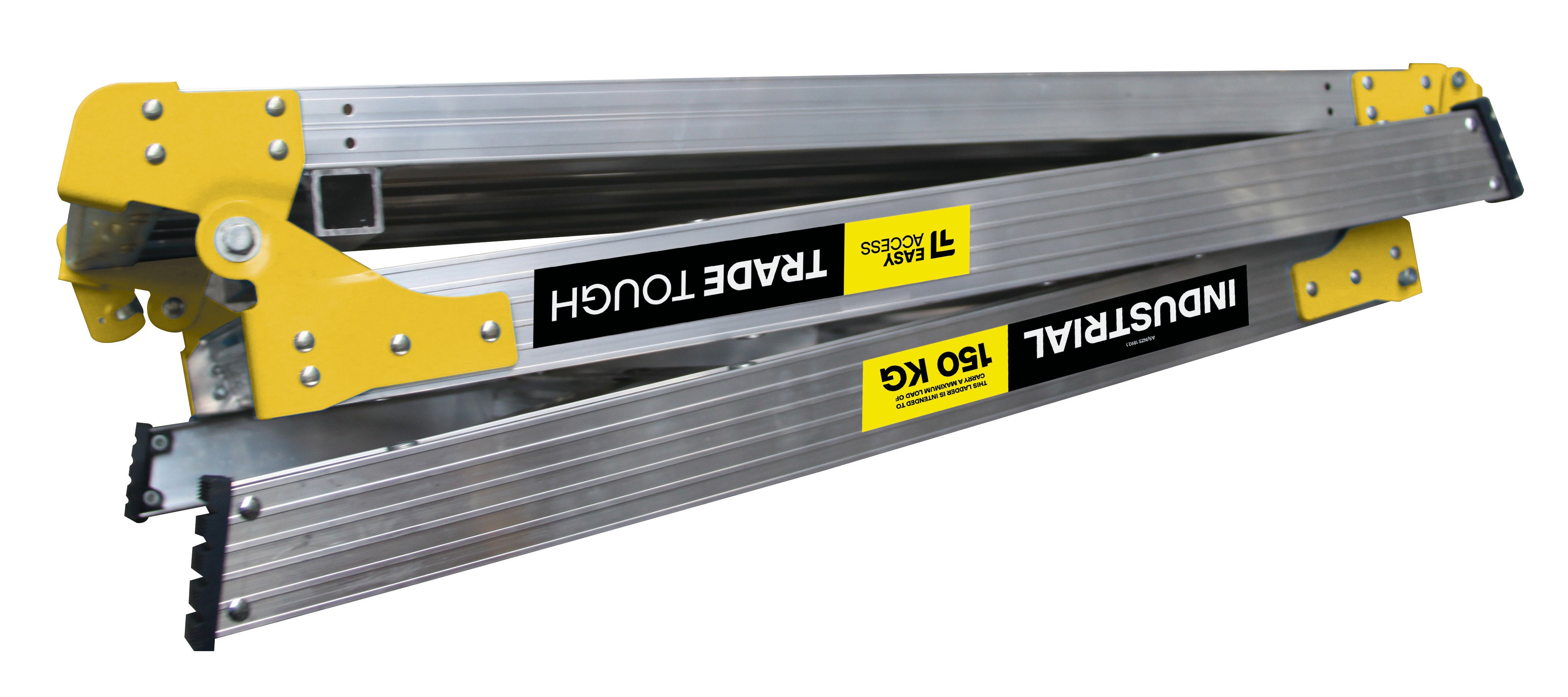 TradeTough Aluminium Folding Work Platform is lightweight, quick to set up, and ideal for low-level indoor jobs. Built from industrial-grade aluminium, it features positive locking hinges with safety catch-locks and anti-slip feet for stability. Legs fold away for easy transport and storage. Available in 2 or 3 steps (300 mm wide) and 3 steps (450 mm wide). Replacement feet available.