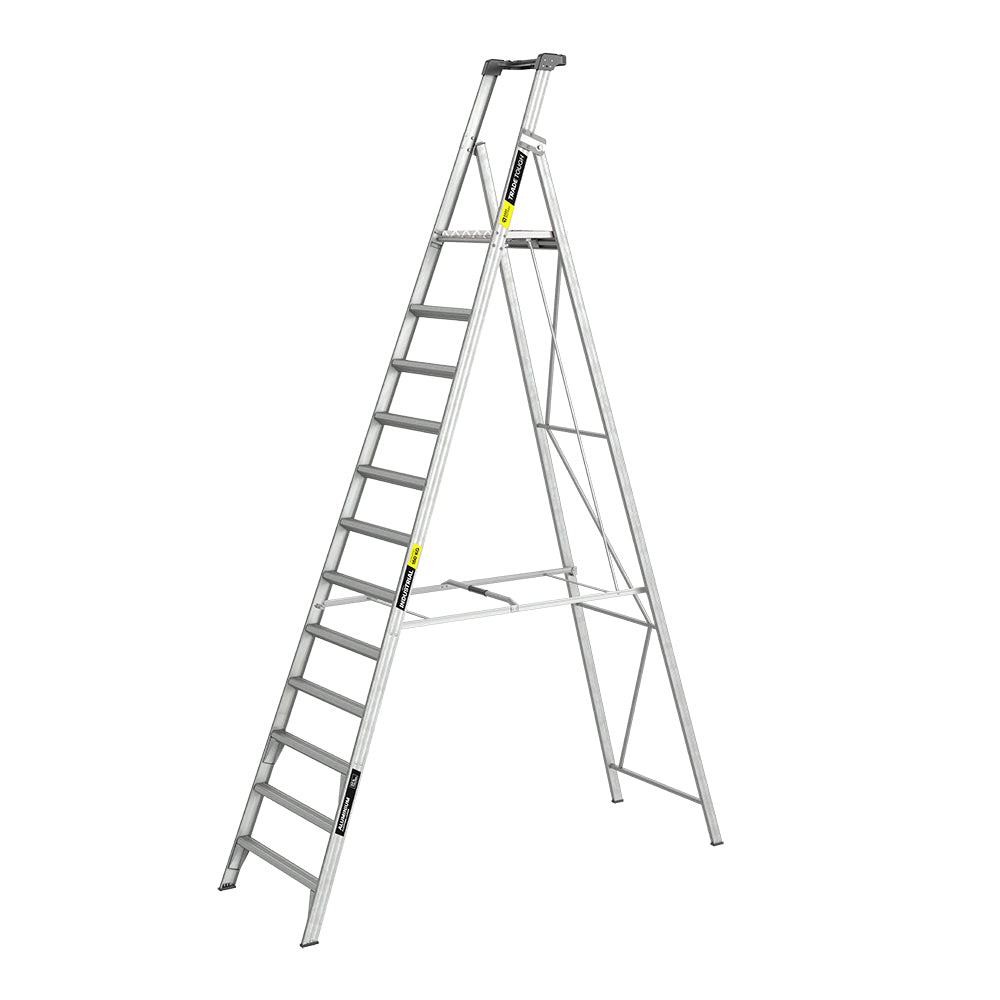 Born in 1999, TradeTough is the classic tough range of ladders commonly seen on construction sites across NZ. The TradeTough Platform Ladder is load rated to a hefty 180kg, providing tradies with the rugged reliability they need on site. Made tough and ridged with fully welded back legs, trapezoidal steps, double-bracing, XL titan tough rivets, and anti-slip steps and feet. It features a uniquely tall 0.9m handrail for ultimate user safety. Sturdy, user-friendly and compact for storage, it complies with AS/NZS 1892.1:2018 and includes a 10-year warranty.