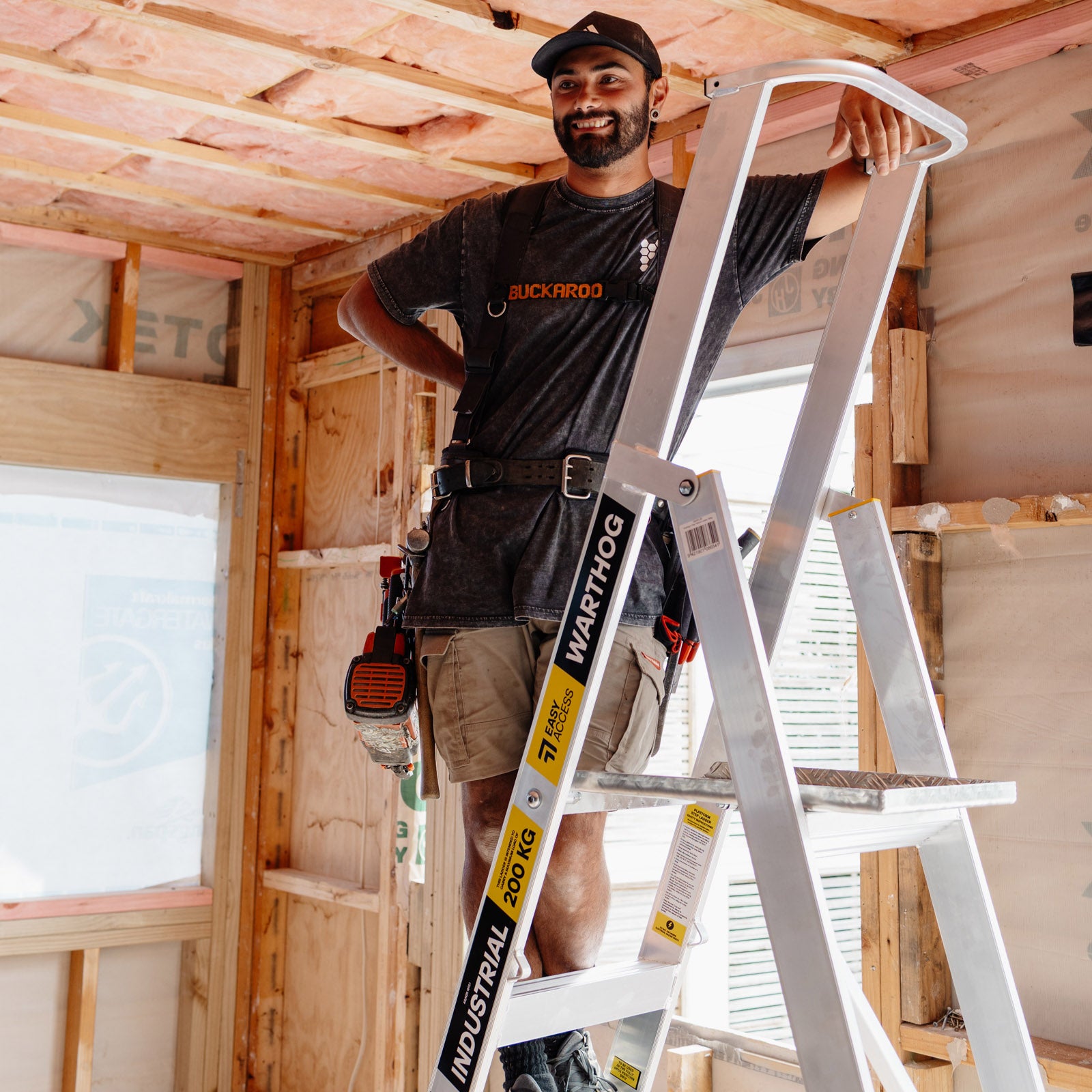 Warthog Ladders are the finest of NZ craftsmanship. The Warthog Platform Ladder delivers unmatched durability, stability, and performance for long-term professional use. A fully welded design, this premium ladder is built to withstand. The large, stable platform provides superior comfort and secure footing for extended tasks at height, ensuring confidence and safety on the job. With a huge 200kg load rating, it delivers exceptional strength and support, making it the ultimate choice for heavy-duty applications. Fully compliant with AS/NZS 1892.1: 2018 and proudly backed by a lifetime warranty the Warthog Platform Ladder is the ultimate investment in strength, durability, and performance.