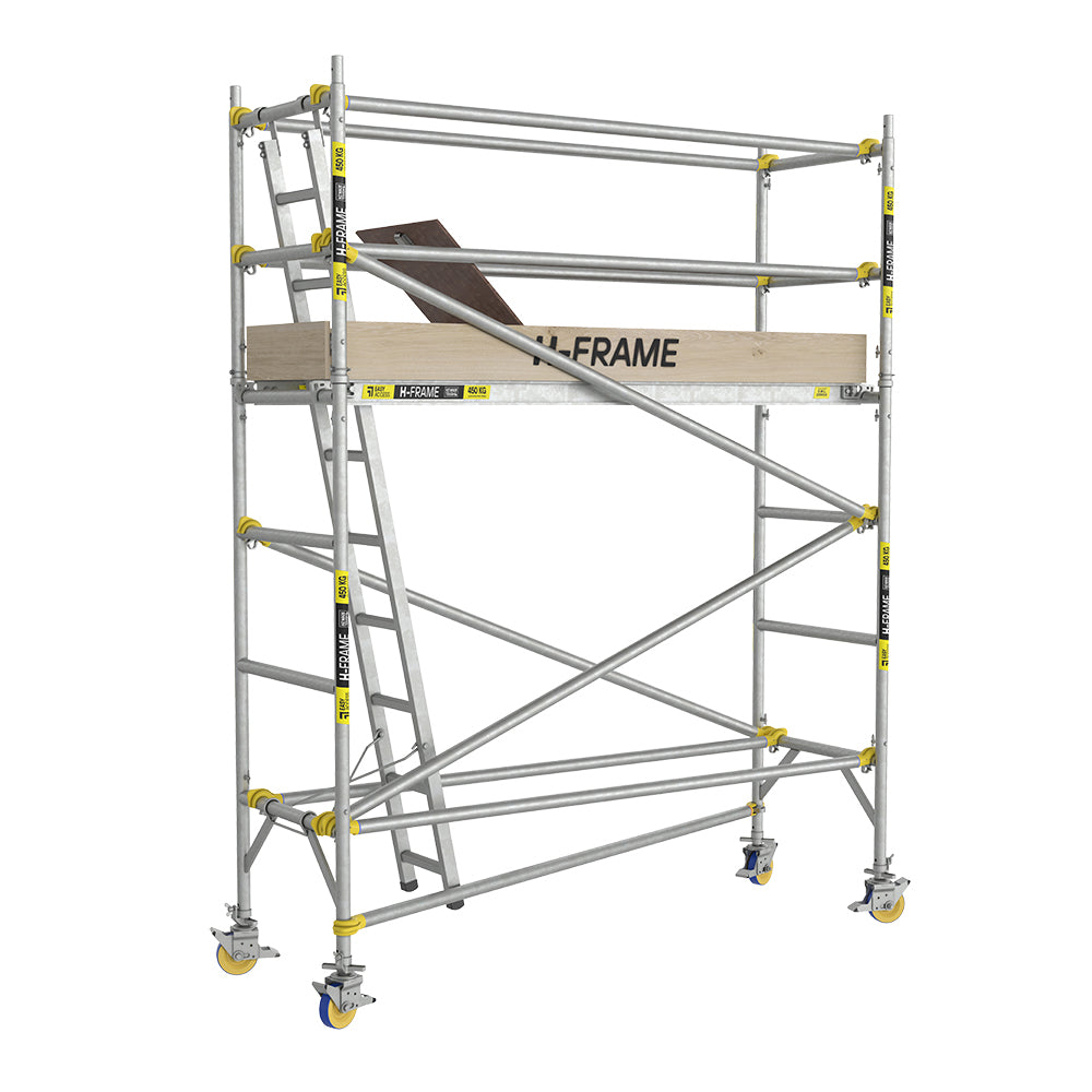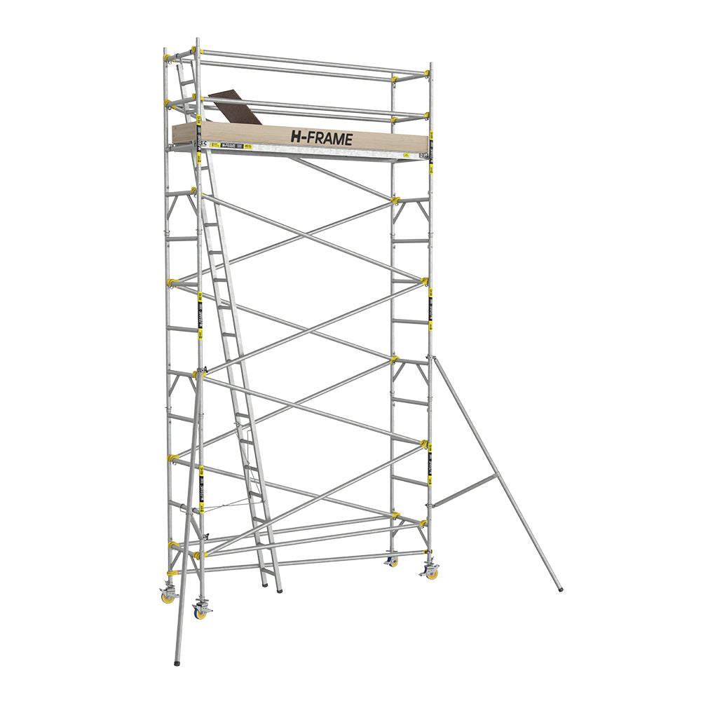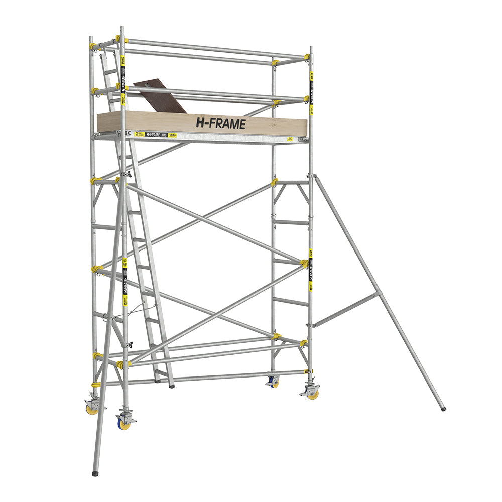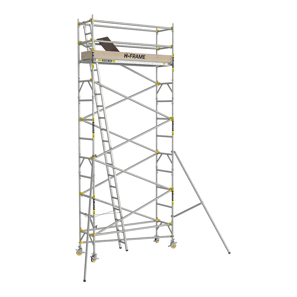 The H-Frame Scaffold Range is our original heavy-duty mobile scaffold, built tough for adaptability and long-term durability. Proudly made in New Zealand, this versatile system is trusted by professionals nationwide for industrial and commercial access needs.Constructed with extra-thick aluminium frame walls and fully welded joints, H-Frame delivers excellent strength and stability on site. Lightweight aluminium snaplock bracing allows for fast, tool-free assembly, making setup simple and efficient without compromising safety. The bracing, guardrails, and plan brace are colour-coded for easy of use.Large 200mm diameter castors allow for smooth mobility and feature 350mm of adjustable height, ensuring stability on uneven surfaces. The system is available in multiple pack sizes and individual components, allowing you to expand or customise your scaffold as needed.All packs come with a scaffold ladder—the safest way to climb a mobile scaffold—and include outriggers and toeboards where required for full AS/NZS 1576.1 compliance.For a lightweight, high-performance scaffold that’s fast to assemble and built to last, the H-Frame Snaplock Range stands a step above the rest.
