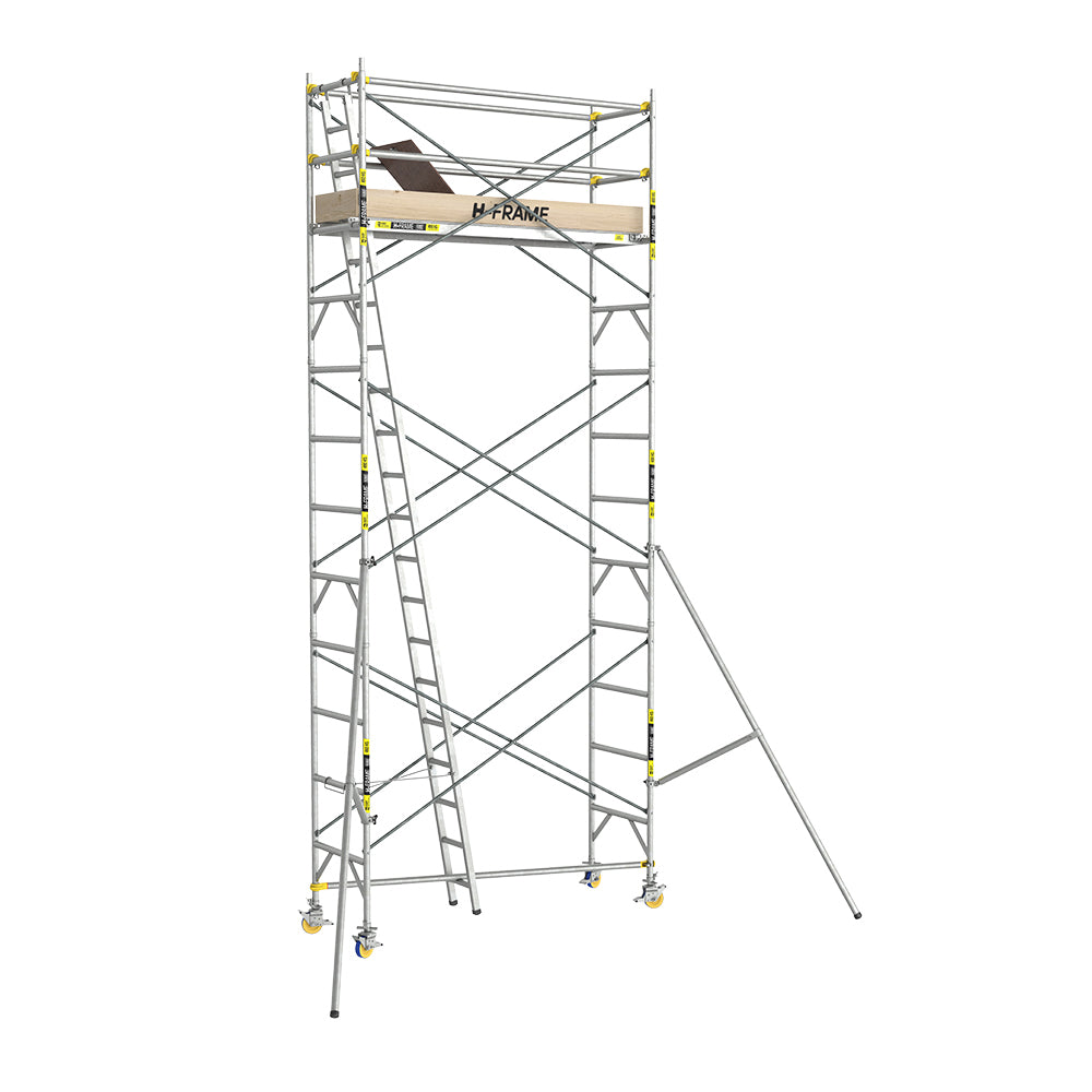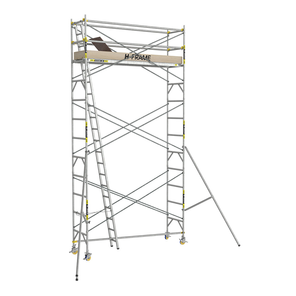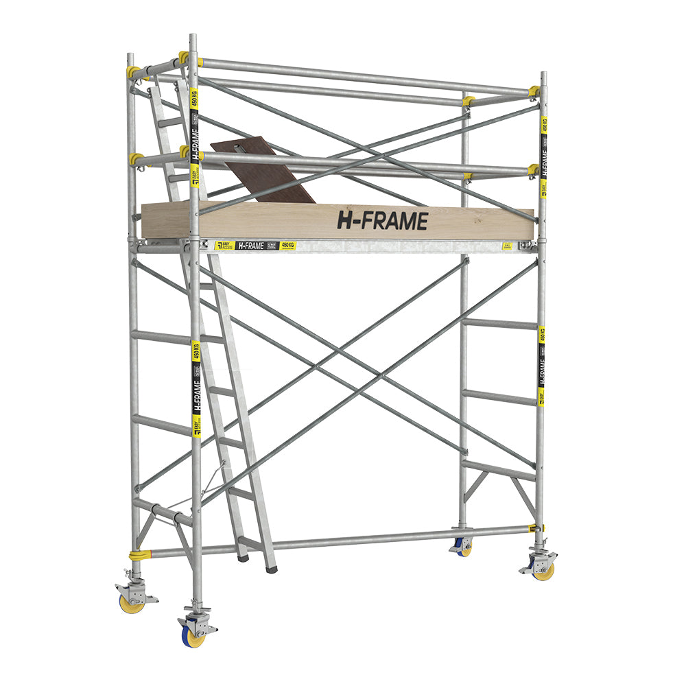 The H-Frame Scaffold Range is our original heavy-duty mobile scaffold, built tough for adaptability and long-term durability. Proudly made in New Zealand, this versatile system is trusted by professionals nationwide for industrial and commercial access needs.Constructed with extra-thick aluminium frame walls and fully welded joints, H-Frame delivers excellent strength and stability on site. Galvanised steel scissor bracing provides strong structural support and installs quickly, making setup efficient and secure without the need for complex assembly.Large 200mm diameter castors allow for smooth mobility and feature 350mm of adjustable height, ensuring stability on uneven surfaces. The system is available in multiple pack sizes and individual components, allowing you to expand or customise your scaffold as needed.All packs come with a scaffold ladder, the safest way to climb a mobile scaffold, and include outriggers and toeboards where required for full AS/NZS 1576.1 compliance.For a reliable, heavy-duty scaffold that’s built to perform, the H-Frame Range stands a step above the rest.