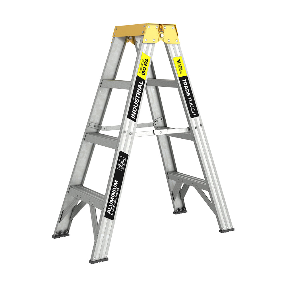 Born in 1999, TradeTough is the classic tough range of ladders commonly seen on construction sites across NZ. Providing tradies with the rugged reliability they need on site. The TradeTough Double-Sided Step Ladder boasts an industry-leading 180kg load rating and is built for durability with superior features. Its non-clogging top step prevents jamming with paint, while large hinges and double bracing provide exceptional strength and longevity. Designed for ease of use, its double-sided design offers versatility for low-level tasks, allowing access from both sides for greater efficiency. Fully compliant with NZ’s industrial rating, this ladder comes with a 10-year warranty, making it a reliable choice for professionals.