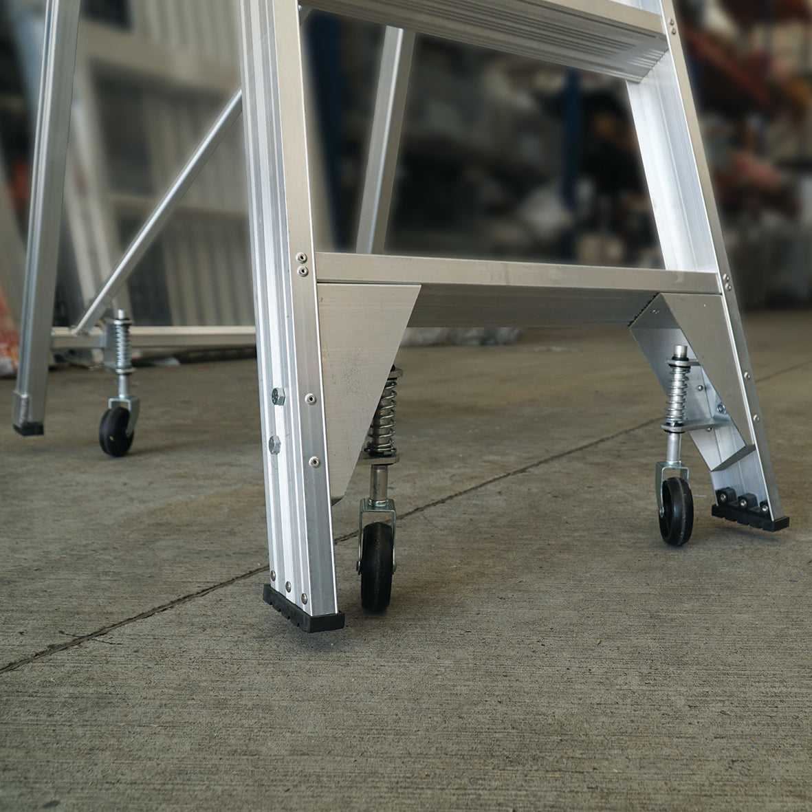 TradeTough Platform Ladder Wheels come in a set of four and are compatible with TradeTough Aluminium and Fibreglass Platform Ladders. The spring-loaded design allows the ladder to roll easily when not in use, then locks firmly in place when you step on it. Step off, and the wheels release for quick repositioning. Increase your efficiency!